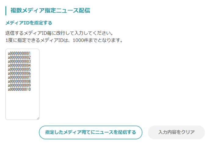 メディア個別ニュース配信(メディアIDを直接指定して配信する場合)の設定方法
