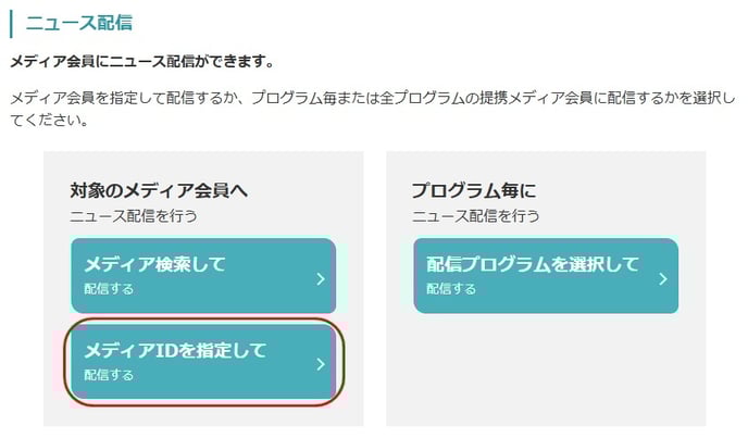 ②配信対象メディアを入力し、「指定したメディア宛てにニュースを配信する」をクリックします。