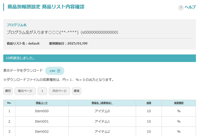 ①商品別報酬設定の確認をしたいプログラムを選択します。